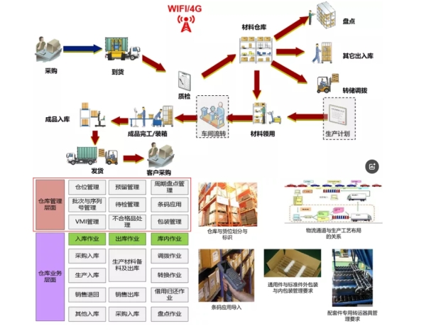 对收货、质检、入库、出库、盘点、调拨、转仓、寄售等仓储环节进行智能化管理,实现关键件/批次物料的追踪、入出库、货物流转、库存盘点、仓储配送的细化管理与控制,有利于加快货物周转效率,减少呆料积压、提升仓储作业效率、减轻人工劳动强度、降低仓储管理成本。